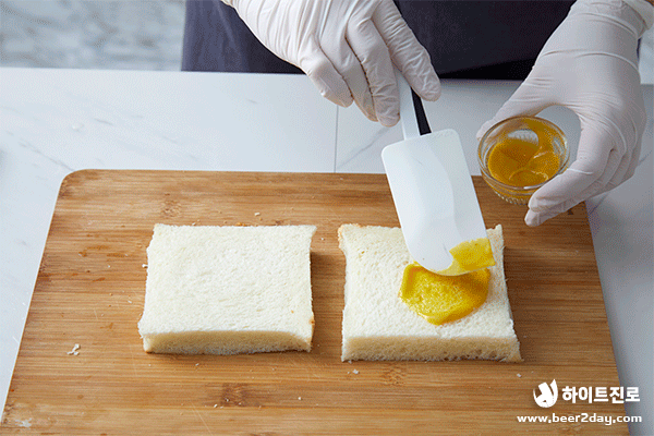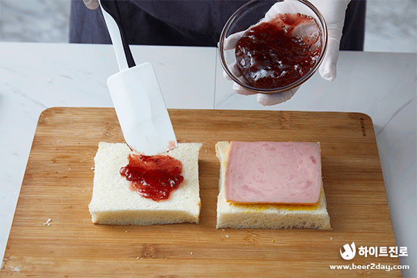 3. 나머지 식빵 한 면에 딸기잼을 발라 덮어주세요.