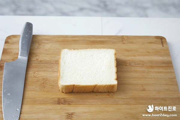 1. 식빵의 테두리를 깔끔하게 잘라주세요.
