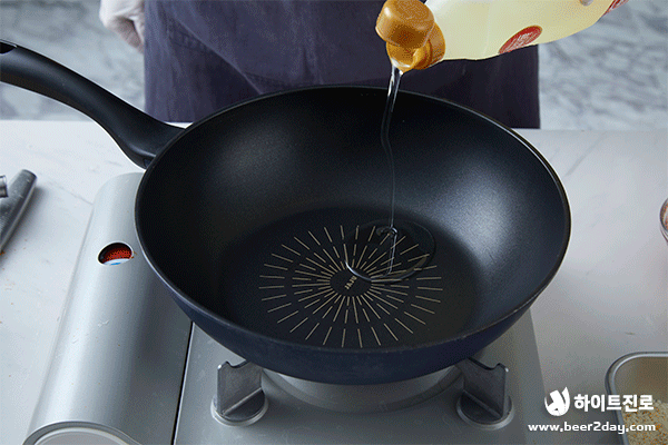 8. 달군 팬에 식용유를 넉넉히 들러주세요.