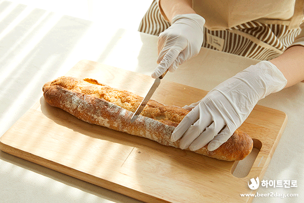 1. 바게트 빵을 1/2 크기로 썰어주세요.