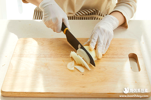 3. 양파도 비슷한 크기로 썰어주고, 볼에 담아주세요.