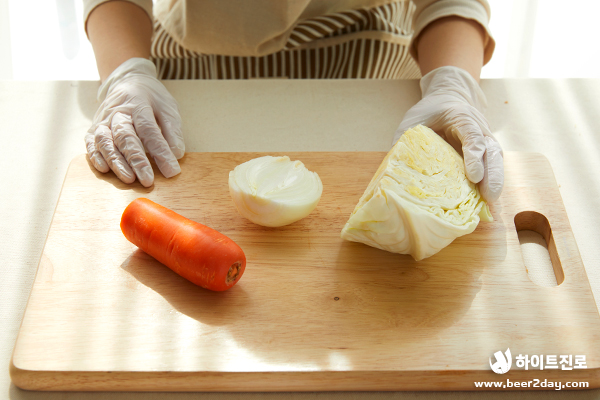 1. 양배추, 양파, 당근을 깨끗하게 씻어 준비해주세요.