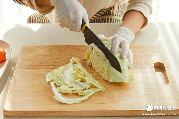 2. 양배추와 당근을 떠먹기 좋은 크기로 썰어주세요.