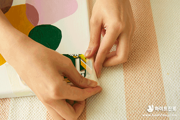 6. 그림에 추가하고 싶은 문구가 있다면 종이테이프로 문구의 뼈대를 움직이지 않게 고정하여 칠한 후 약 10분~ 15분 정도 말려줍니다.