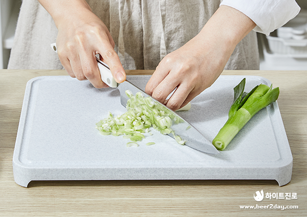 2. 마늘을 편 썰어주고, 대파는 줄기 부분을 다져주세요.