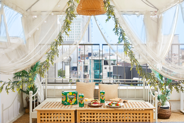 비투지기는 바로 옆 테이블로 이동하여 탁 트인 도심 뷰와 감성 캠핑 인테리어들을 조금 더 즐겨보았습니다. 청정한 미소가 활짝 피어나는 한정판 테라X스마일리 맥주가 술술 들어가는 도심 속 감성 캠핑! 어떠셨나요? 기나긴 이동시간과 캠핑 장비, 세팅 시간 등으로 캠핑을 고민하고 계신 분들이라면 탁 트인 뷰와 감성적인 인테리어 소품들이 가득한 이곳에서 테라X스마일리와 함께 캠핑을 즐겨보세요!