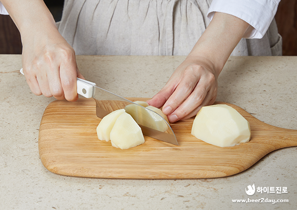 3. 양파와 감자를 씹는 식감이 좋을 정도로 큼지막하게 썰어주세요.
