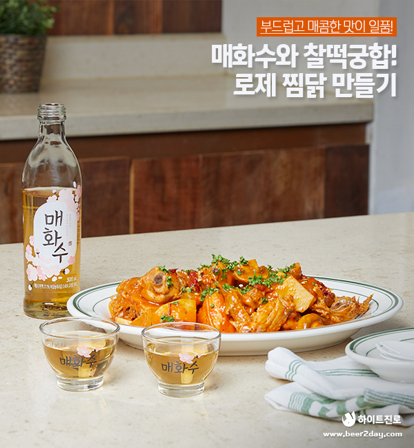 로제 찜닭은 남녀노소 누구나 함께 즐길  있는 맛으로  파티 음식으로도 제격이랍니다. 이번 주말, 달콤한 매화수와 찰떡궁합인 로제 찜닭을 즐겨보는  어떠실까요?