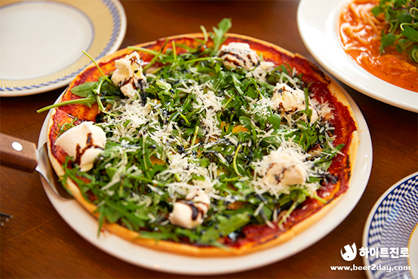세 번째 메뉴는 이곳의 시그니처 피자인 ‘더 팬트리 피자’입니다. 가게에 이름을 따서 만든 피자인 만큼 더욱 기대되는 메뉴였어요. 상큼한 발사믹 식초의 향이 후각을 자극하고 루꼴라와 리코타 치즈의 조합이 예술이었습니다. 기존의 피자와는 다르게 굉장히 색다르고 고급스러운 맛이었어요. 청정한 테라 생맥주 한입에 피자 한입이면 입안에 이탈리아의 풍경이 펼쳐지는 것 같습니다.