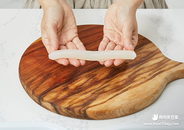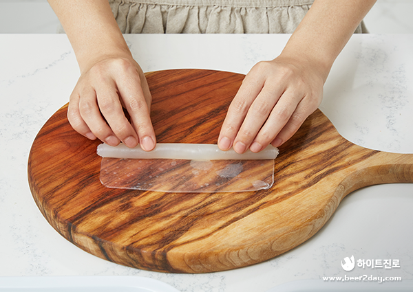 (TIP : 물에 오래 담그면 라이스페이퍼가 금세 불어 말기 어려우니 주의해주세요!)