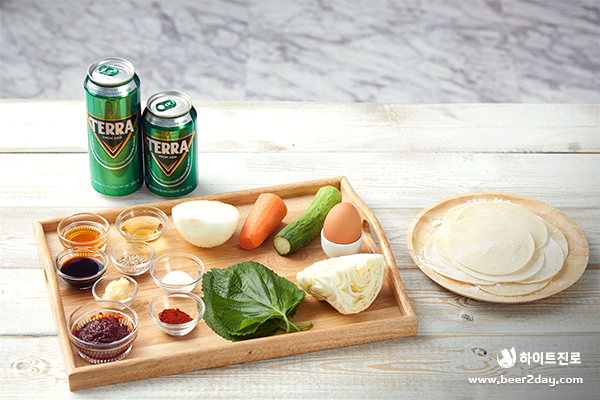 겉바속촉 만두피와 아삭한 채소의 하모니! 만두피에 원하는 만큼 채소를 싸 먹어 보세요. 비투지기는 한 가득~! 넣어 먹었답니다.ㅎㅎ 취향에 따라 채소를 변경하거나 청양고추로 매콤함을 더할 수 있어요. 맛있는 납작 비빔만두와 리얼탄산으로 청량한 테라가 함께라면 젓가락을 멈출 수 없죠. 매콤 새콤한 비빔만두 한 젓가락에 테라 한 모금이라면 이게 바로 행복! 무더위, 테라와 함께 이겨내 보아요!