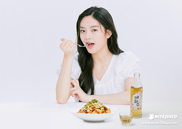 겉은 바삭바삭하고 속은 부드러운 깐풍치킨이 완성되었습니다. 간단한 양념으로 깐풍기의 매콤 달콤한 맛을 구현해보았는데요. 바삭한 튀김 위로 알싸한 소스가 어우러져 풍미 가득한 맛이 입안 가득 느껴지고 대파와 마늘, 청양고추가 어우러지는 소스가 느끼함을 확 잡아주어 계속 손이 갑니다. 매콤한 깐풍치킨에 향긋한 매화수를 함께 곁들이니 그 맛이 배가 됩니다.