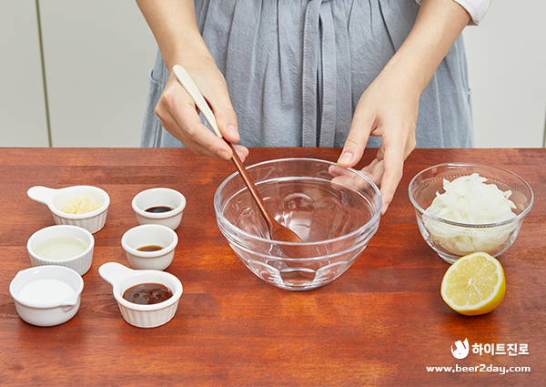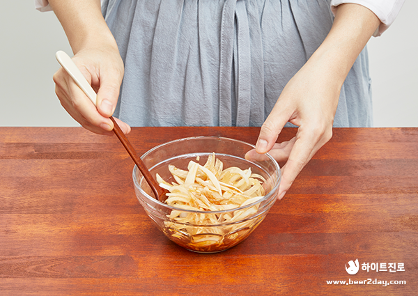 6. 양념장에 채 썬 양파를 넣어 섞어주세요.