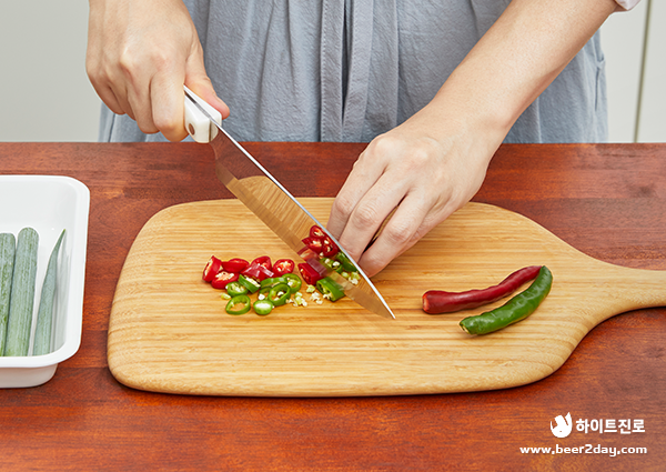 4. 대파, 청양고추, 홍고추는 송송 썰어 준비해주세요.