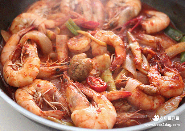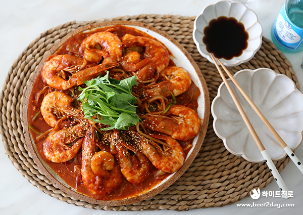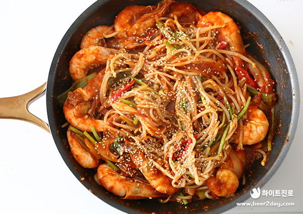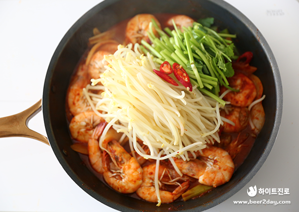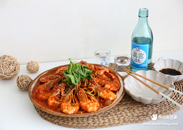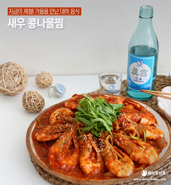 제철을 만나 더욱 맛있는 새우 콩나물 찜이 완성되었습니다! 매콤한 양념의 새우와 아삭한 콩나물을 함께 씹을 때마다 기분 좋은 고소함이 느껴지는데요. 새우 콩나물 찜은 초깔끔한 진로 한 잔과 함께 홈술 안주로 즐기기에도 딱이랍니다. 매콤한 양념장에 밥을 볶아 먹어도 좋은 새우 콩나물 찜! 얼큰하고 칼칼한 음식이 땡기는 날엔 오늘 소개해드린 새우 콩나물 찜과 초깔끔한 진로를 함께 드셔보는 건 어떨까요?