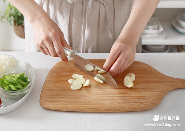 3. 통마늘은 슬라이스 해주세요.