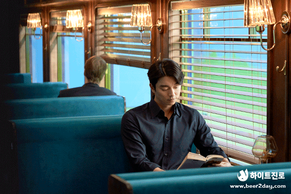 공유가 탑승 중인 청정열차의 내부는 엔티크한 인테리어가 돋보입니다. 공유를 위해 만들어졌다고 해도 무방할 만큼 곳곳의 고풍스러운 연출이 눈에 띄네요. 덕분에 공유의 청정함이 한 층 더 업그레이드된 것 같습니다.