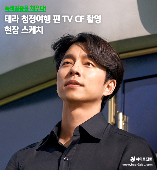 빽빽하게 들어선 도심 속 고층 건물 사이가 아닌, 광활한 청보리밭을 질주하는 청정열차의 모습이 가슴 속 녹색 갈증을 씻어주는 느낌인데요. 녹색갈증이란 인간의 유전자 속에 각인되어 있는 자연을 그리워하고 자연 속에서 살아가고 싶은 본능을 말합니다. 청정열차를 타고 대자연 속으로 떠나는 인간테라 공유의 모습은 마치 한 편의 영화를 보는 것 같은데요. 지금 바로 비투지기와 테라 청정여행 편 TV CF 촬영 비하인드를 보러 갈까요?