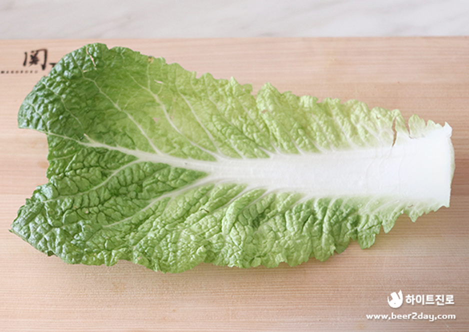 2. 배추, 고기, 깻잎 순으로 재료를 차곡차곡 올려주세요.