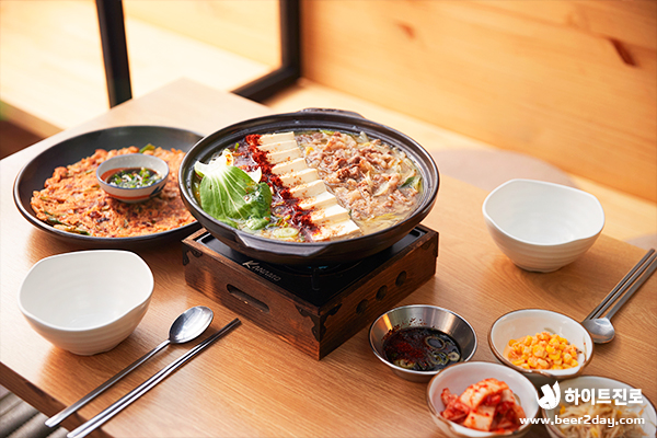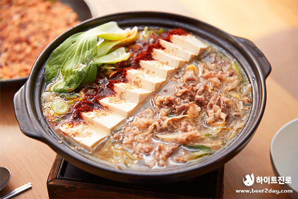 ‘차돌박이두부전골’은 차돌박이, 두부, 숙주, 버섯, 청경채 등 전골 안에 재료가 아낌없이 들어있어요. 두부 위 올려진 특제 소스로 담백하면서도 살짝 매콤한 맛이 일품인데요. 폭신한 두부, 아삭한 채소, 고소한 차돌박이를 싸서 양념장에 찍어 더 맛있게 즐겨보세요. 시간이 지날수록 고기 육수가 깊어져 더 진하고 담백한 맛의 전골을 느끼실 수 있습니다.