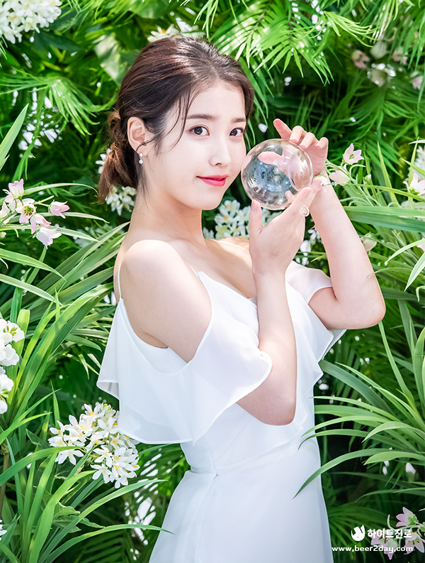 이슬 요정에게 여름이 찾아온 모습입니다! 조명 아래에서 더욱 또렷하게 빛나는 아이유의 깨끗한 눈망울은 주변까지 반짝반짝 빛을 내는 것만 같은데요. 청량하고 맑은 바다가 연상되는 볼 풀 속에서 투명 볼을 들고 미소를 짓는 이슬 요정 아이유는 너무나도 사랑스럽습니다.