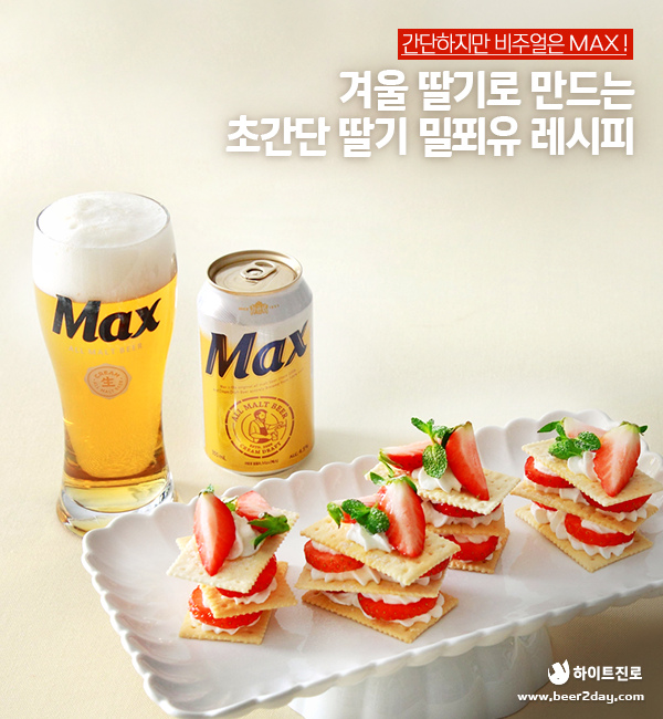 특히 이맘때 먹는 딸기의 예쁜 색감과 달콤한 맛은 우리를 늘 설레게 하는데요. 오늘은 크리미한 맥주거품으로 맛의 풍미를 높여주는 맥스와 어울리는 고급스러운 제철 딸기 밀푀유 레시피를 알려드리고자 합니다. 만들기 간편하지만 쉐프의 손길을 받을 듯한 비쥬얼을 자랑할 딸기 밀푀유를 만들어볼까요?