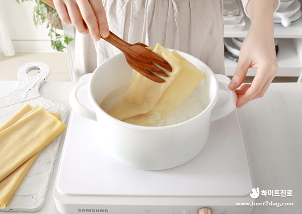 8. 포두부는 끓는 물에 살짝 넣어 데친 후 물기를 제거해 주세요.