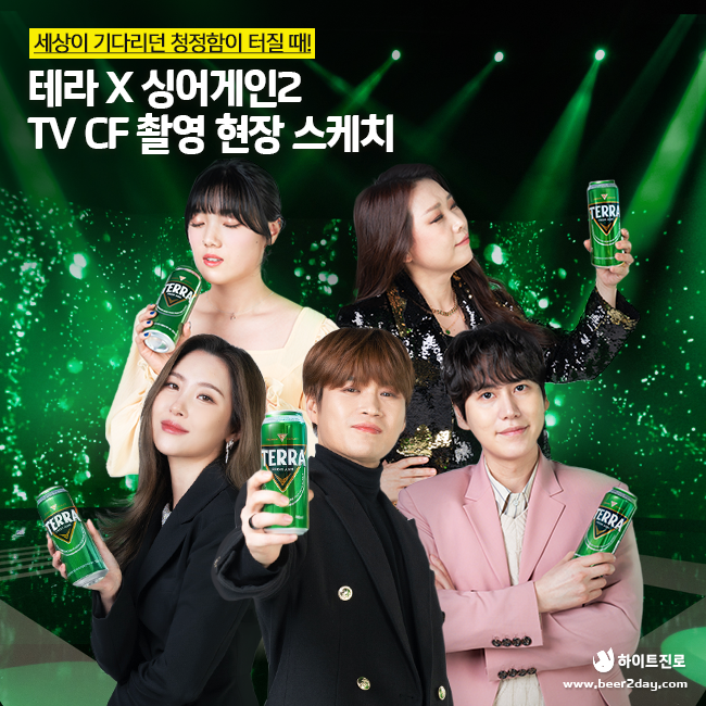 얼마 전 공개된 테라의 새 TV CF! 청정함이 터지는 테라와 싱어게인의 만남으로 주목을 받고 있는데요. 싱어게인2 스튜디오를 그대로 재현한 듯한 세트장에서 만난 심사위원 규현과 선미, 그리고 싱어게인2 TOP3! 이들과 함께한 테라 CF 촬영 비하인드를 지금 바로 공개합니다!