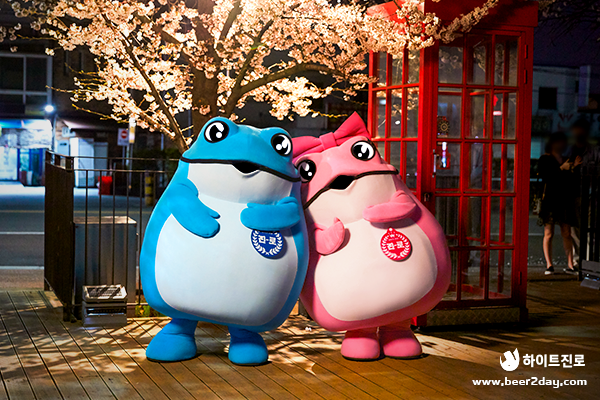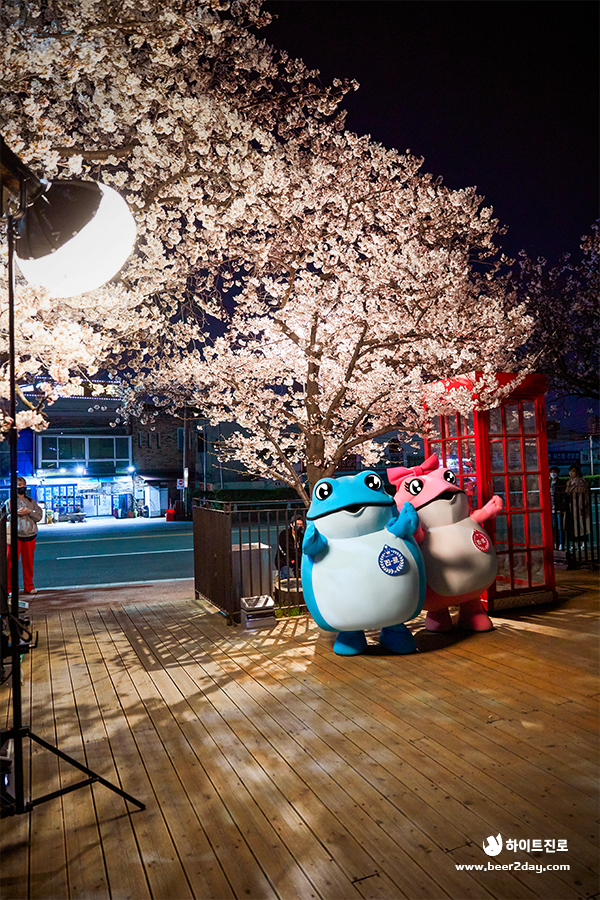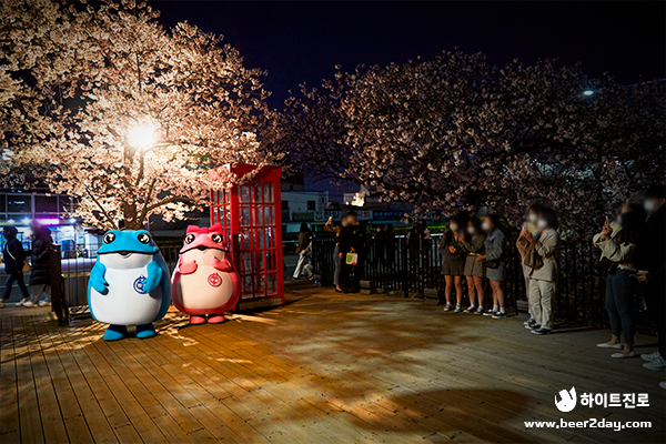 저녁이 되자, 벚꽃을 구경하러 나온 시민 여러분들도 발걸음을 멈추고 촬영 중인 꺼비커플을 따뜻하게 지켜봐 주셨는데요! 꺼비커플이 움직일 때마다 이어지는 환호에 즉석 팬 미팅 현장을 방불케 했다고 합니다.🤣