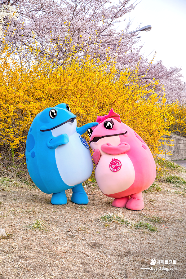 길게 늘어 진 벚꽃길로 유명한 청주 벚꽃 명소 무심천! 꺼비커플을 환영하기라도 하는 듯, 활짝 핀 아름다운 벚꽃✨