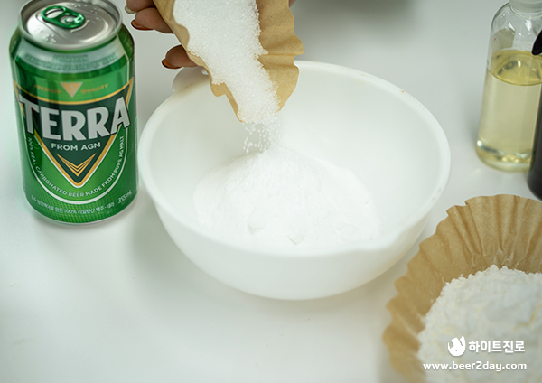 베이킹소다, 구연산, 옥수수전분 등 가루형 재료들을 계량 후 넣어줍니다.