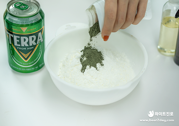 모든 재료들을 잘 섞어줍니다. 이 때 가루가 뭉치는 부분이 없도록 덩어리를 부숴가며 풀어주세요.