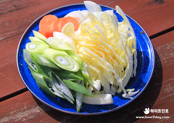 2. 양파, 당근, 대파, 양배추 등 야채를 먹기 좋은 크기로 손질 후 물기를 빼 줍니다.