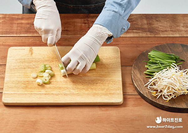 2. 숙주나물은 깨끗이 씻어두고, 부추는 5cm 길이로 썰고, 대파는 송송 썰어 주세요.