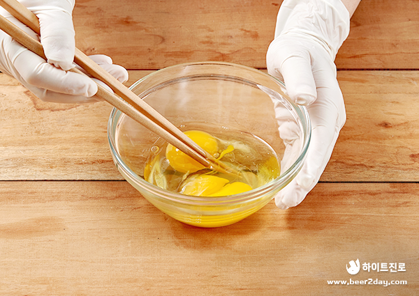 3. 달걀 2개는 스크램블 용으로, 풀어서 준비해 두세요.