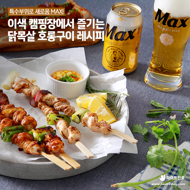 앞뒤로 잘 구운 꼬치를 그릇에 예쁘게 담아 먹어도, 캠핑장 그릴 위에서 바로바로 구워 먹어도 맛있는 닭목살 호롱구이! 닭목살만으로 조금 심심하게 느껴진다면 닭 근위나 염통 등으로 특수부위 꼬치 세트를 만들어 즐겨도 좋답니다. 다가오는 캠핑에서는 식감도, 맛도 색다른 각종 특수부위들로 먹는 재미를 더해보세요!