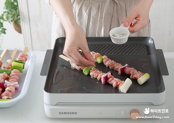 - 소금구이 꼬치: 소금과 후춧가루를 뿌려 앞뒤로 구워 주세요.