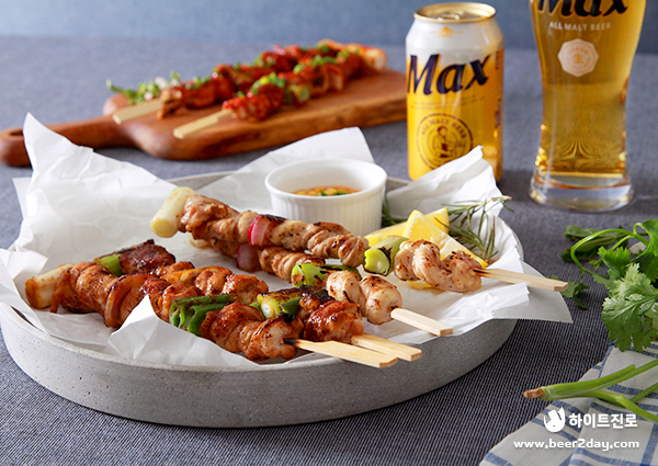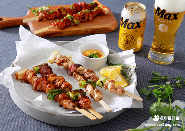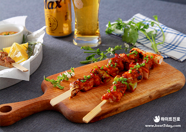 이렇게 닭 특수부위 중 하나인 닭목살을 이용한 닭목살 호롱구이가 완성되었습니다. 맥스처럼 부드럽게 감긴 닭목살을 꼬치에서 쏙쏙 베어 무는 재미도 있어 더욱 맛있게 느껴집니다.