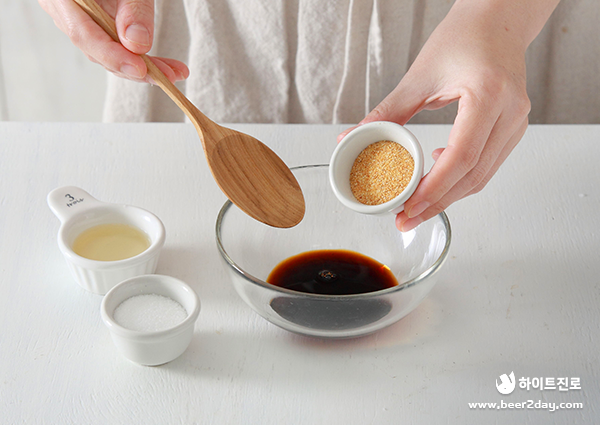 *데리야키 양념 - 양조간장 2큰술, 맛술 1큰술, 설탕 1큰술, 마늘가루 1/2큰술