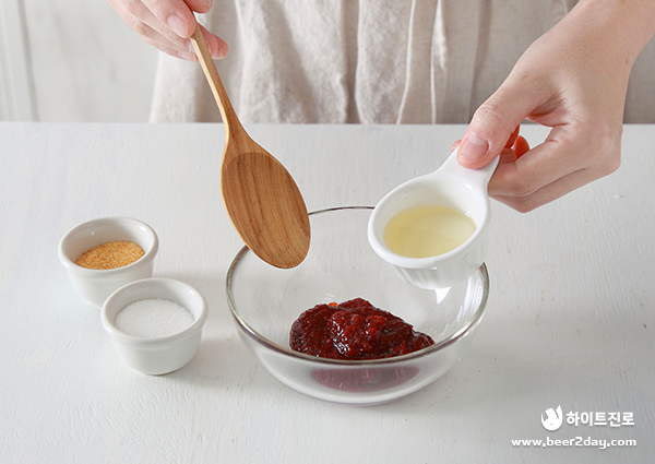 *고추장 양념 - 고추장 2큰술, 맛술 1큰술, 설탕 1큰술, 마늘가루 1/2큰술