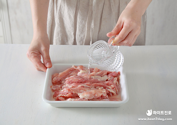 1. 닭목살은 소주에 30분 정도 담가 누린내를 제거합니다.