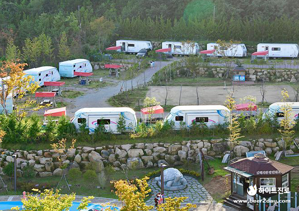 마지막으로 경상남도 김해시의 <카라반 르몽드>입니다. 김해가야테마파크 내에 위치한 카라반 캠핑장으로, 가야의 고유 문화를 현대적 감각으로 재해석한 독창적 테마로 꾸며져 있습니다. 캠핑장 내에 잔디광장, 포토존 등이 마련되어 있으며, 여름에는 에어바운스 풀장을 개장해 수영도 즐길 수 있다고 하는데요. 올해에는 지난 11일부터 수영장을 개장했다고 하니, 시원한 물놀이도 함께 즐겨보세요.