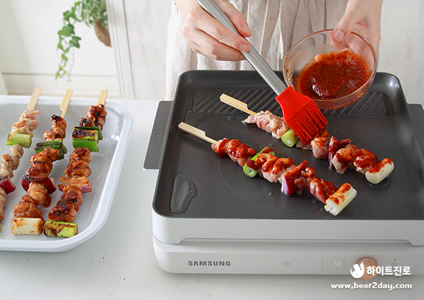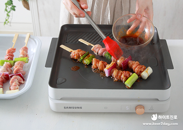 - 데리야키 꼬치: 데리야키 양념장을 앞뒤로 발라 가며 구워 주세요