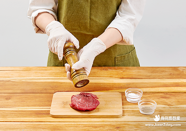 TIP. 나무젓가락으로 중앙을 찔렀을 때 핏물이 곧바로 나오면 미디엄 레어, 핏물이 약 2~3초 후에 나오면 미디엄으로 볼 수 있습니다.