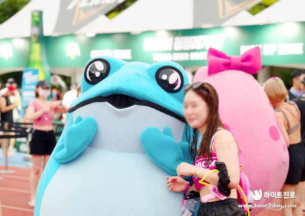 반가운 얼굴! 꺼비도 워터밤을 즐기러 부산에 출동했습니다. 귀여운 두꺼비들과 테라 병돌이가 등장하자 많은 분들이 기념사진을 남기기 위해 곁으로 다가오셨는데요. 꺼비와 병돌이는 참가자들과 사진도 찍고 하이파이브도 나누며 슈퍼스타다운 면모를 마음껏 발산했습니다.