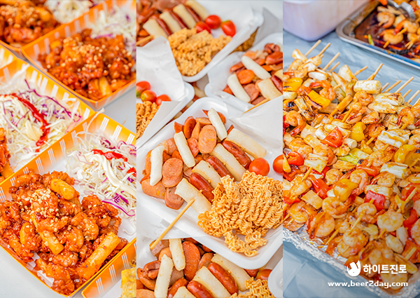 홍천강 별빛음악 맥주축제에는 ‘축제’라는 이름에 걸맞게 맥주를 비롯한 풍성한 먹거리가 준비돼 있었는데요. 입구 주위에서부터 다양한 먹거리 부스가 마련돼 많은 관객들을 맞이했습니다.