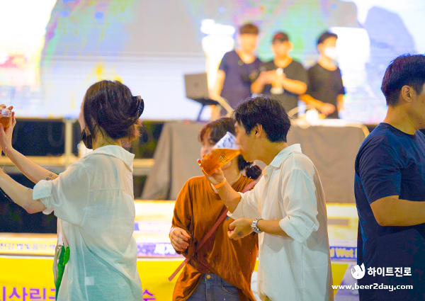Wet Dance 경연대회에 이어 관객 참여형 이벤트인 ‘커플 맥주 빨리 마시기 대회’와 ‘즉석 댄스 배틀’도 진행됐는데요. 관객들이 직접 참여하면서 웃고 즐기는 모습이 매우 보기 좋았습니다.