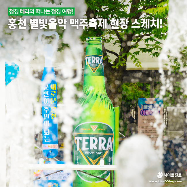 이번 홍천 맥주축제가 특히 청정하게 느껴졌던 것은 바로 리얼탄산 100%, 청정라거 테라와 함께했기 때문인데요. 청정 테라와 함께 1664블랑, 파울라너, 그리고 홍천 수제맥주까지 다양하고 시원한 맥주가 저희를 기다리고 있었습니다.