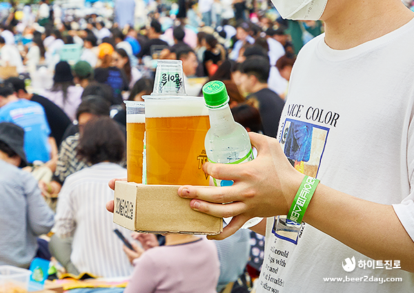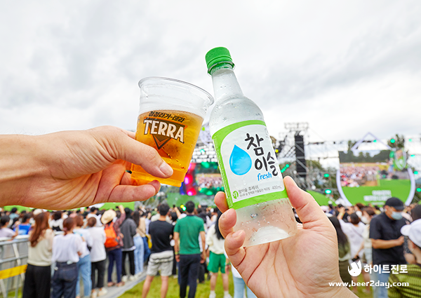 이슬라이브 페스티벌에서 빠질 수 없는 후레쉬한 참이슬과 초깔끔한 진로, 거기에 청정라거 테라까지! 가득 준비되었는데요~ 낮술로 텐션 예열하며 축제의 열기는 점점 더 무르익어갑니다.