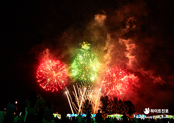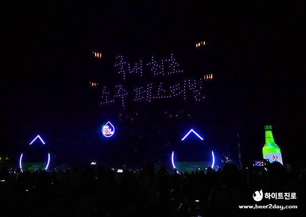 3년 만에 돌아온 이슬라이브 페스티벌의 마지막 대미를 장식하는 300대의 드론 불꽃쇼와 감동의 불꽃놀이! 이슬같이 선명하게 반짝이는 두꺼비와 참이슬, 테라 로고가 자라섬의 늦여름 밤을 화려하게 장식했어요.